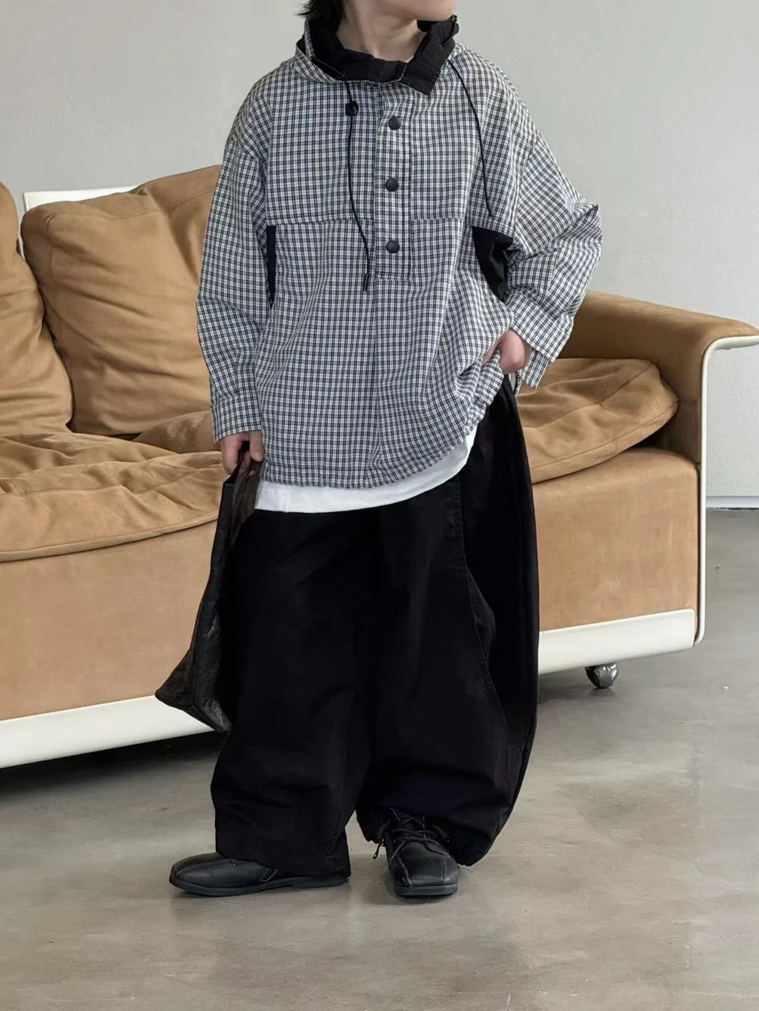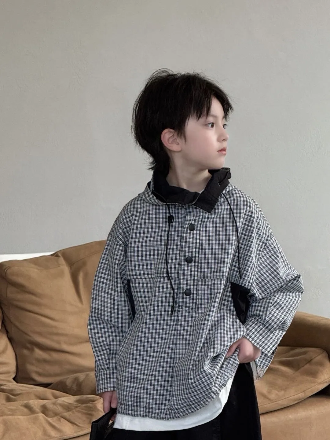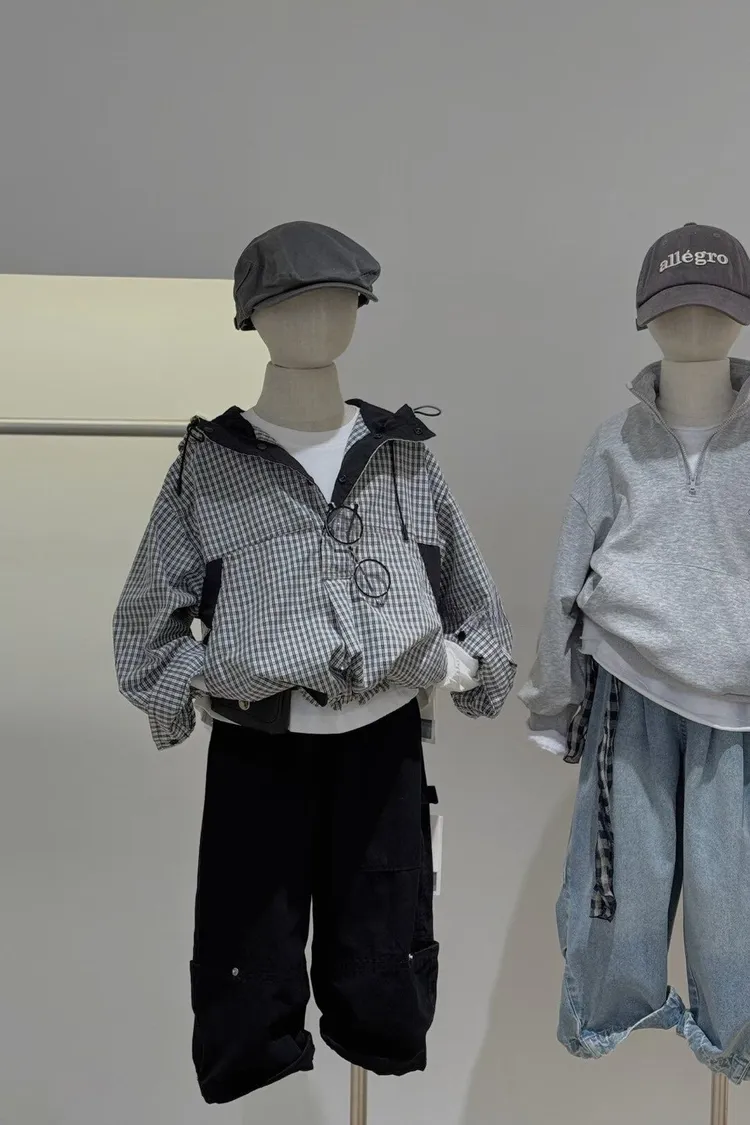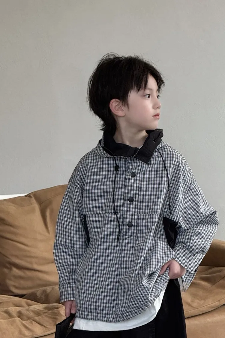 ❮大童❯格子拚接連帽外套