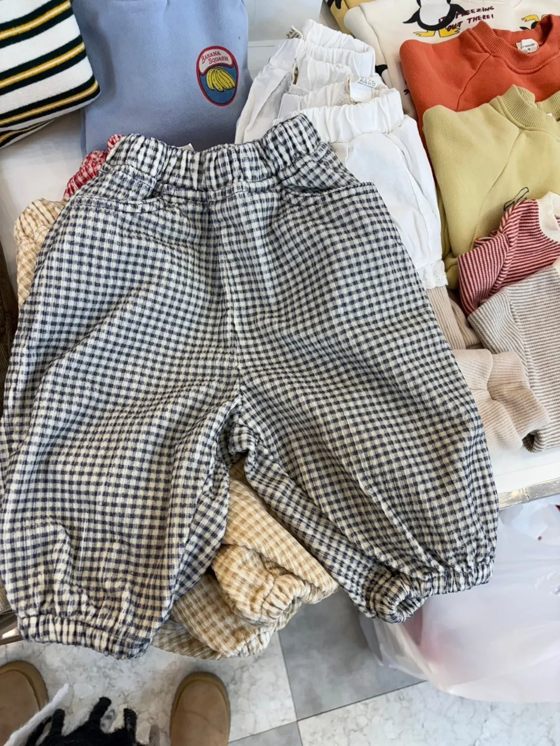 正韓格紋長褲
