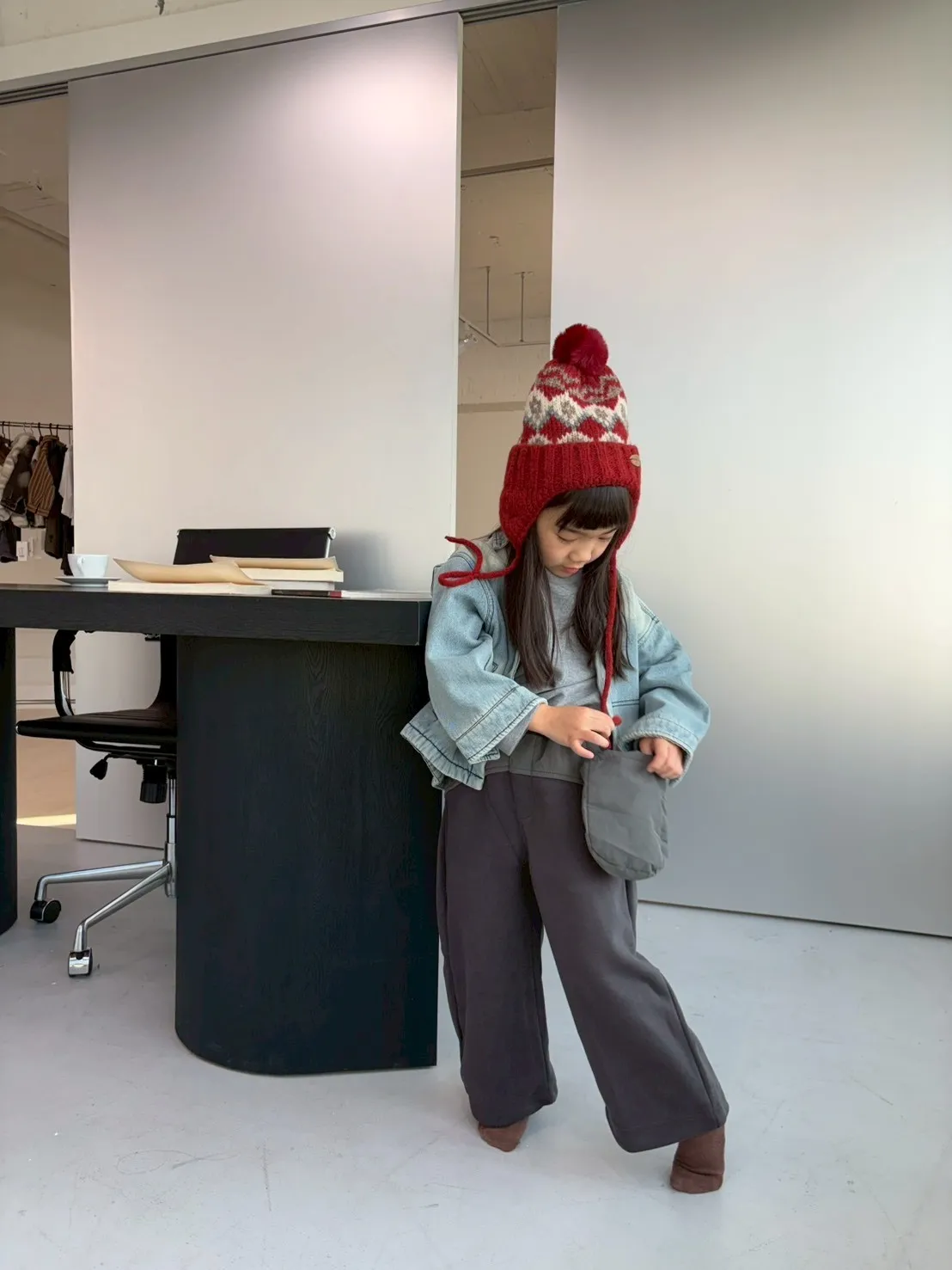 拚腰掛飾長褲(附包包)