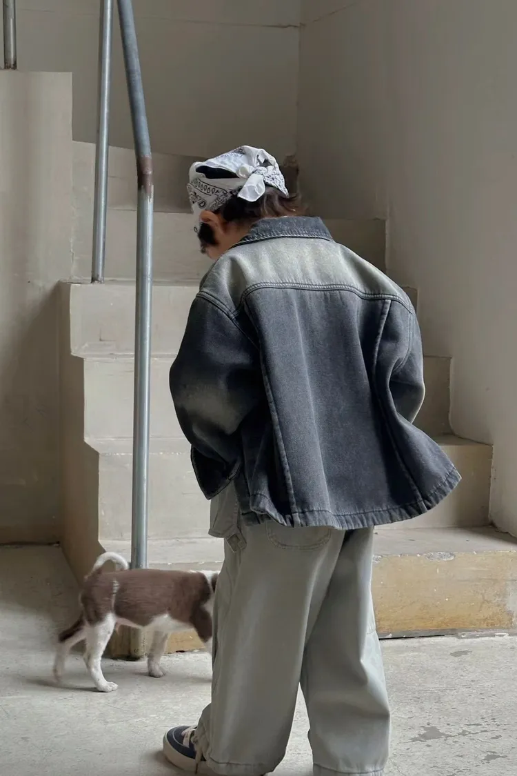 噴白百搭牛仔襯衫外套