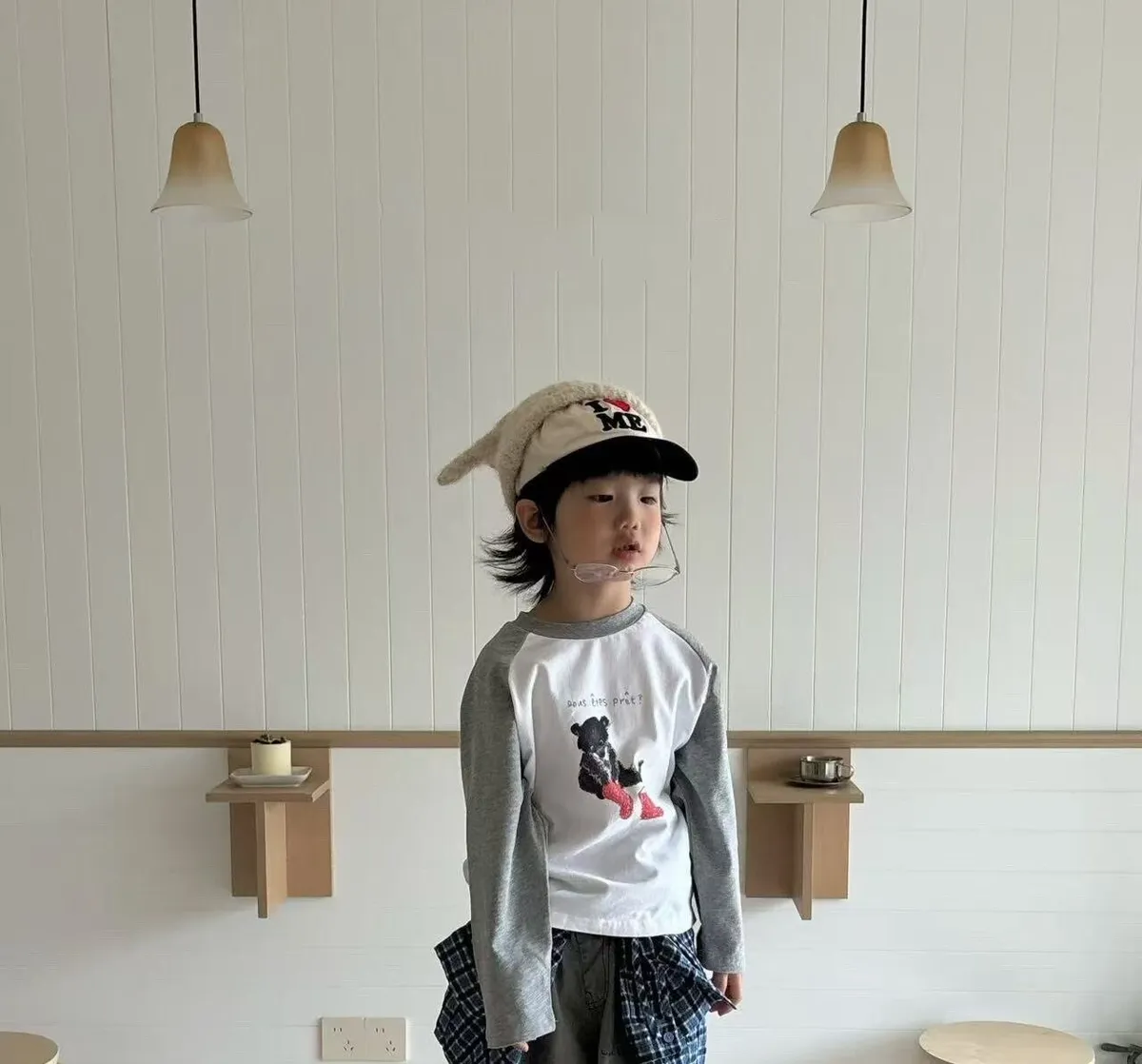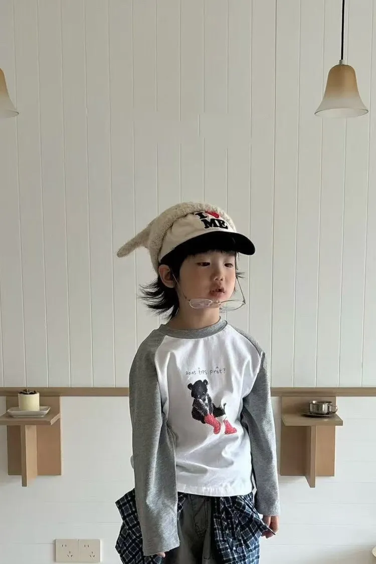 插肩小熊簡約T恤