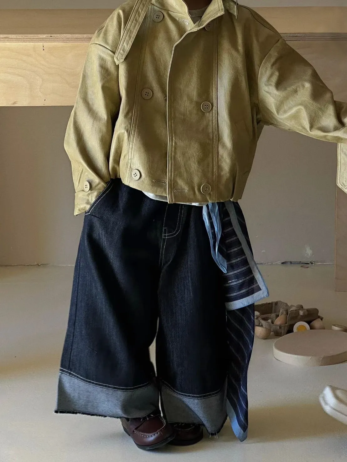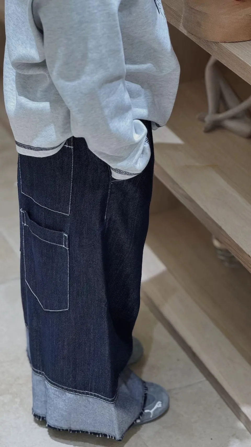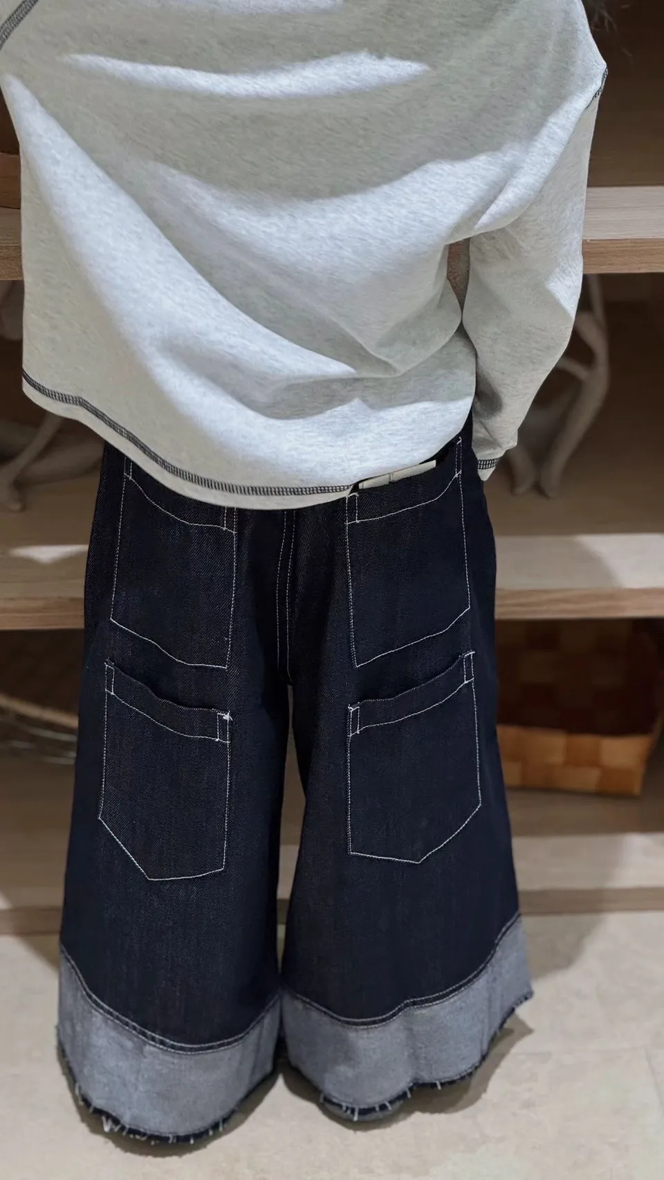 軟牛仔反拚八分褲