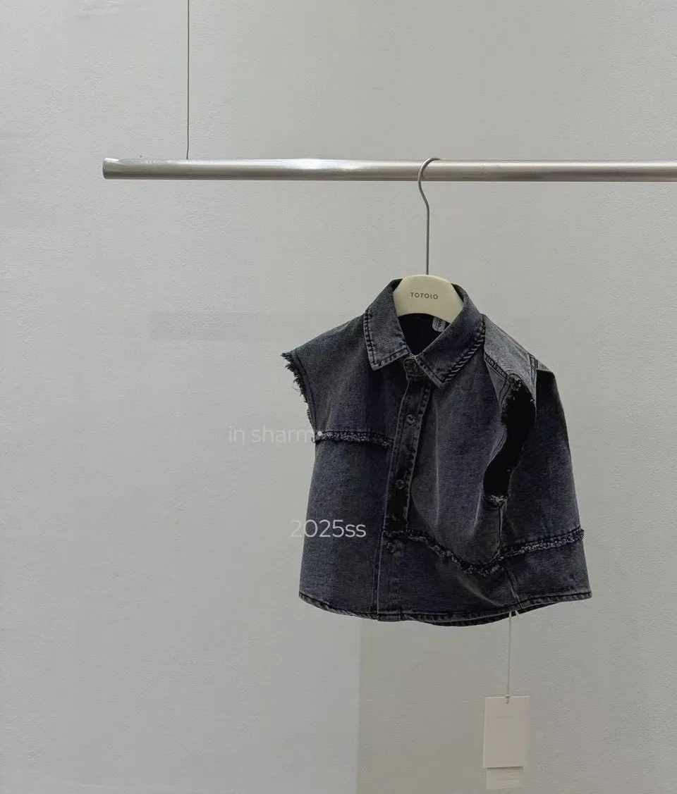 袖口毛邊牛仔背心